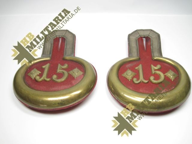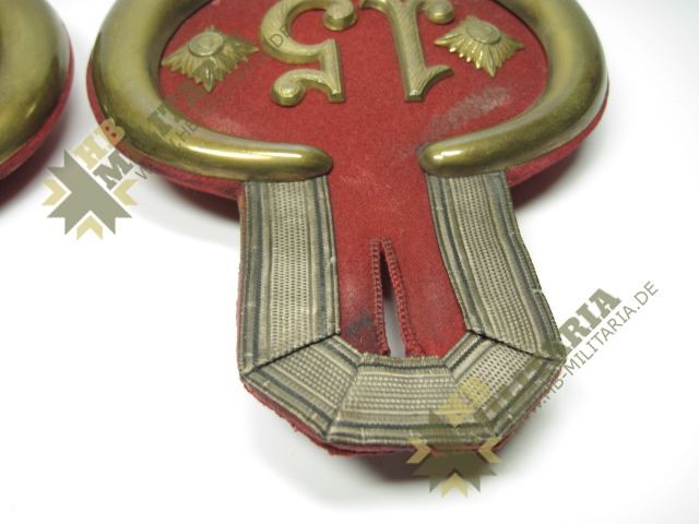 Bayern: 1 Paar Epauletten, um 1900, Hauptmann. 15. Inf. -Rgt. König Friedrich August von Sachsen, Neuburg a.D. I AK Hochrotes Feld, gelber Halbmond.