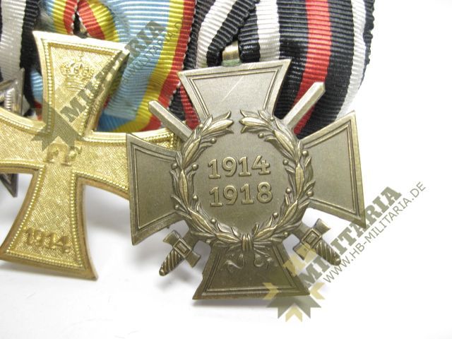3er Ordensspange: Mecklenburg, Eisernes Kreuz und Ehrenkreuz für Kriegsteilnehmer: Eisernes Kreuz von 1914 zweite Klasse, Mecklenburg Militärverdienstkreuz 2. Klasse und Ehrenkreuz für Frontkämpfer Rückseitig: Friedr. Sedlatzek Berlin SW 68, Friedrichstr. 205 Sehr schöner Erhaltungszustand.
