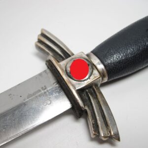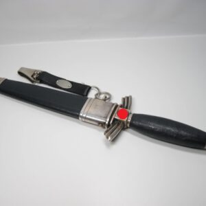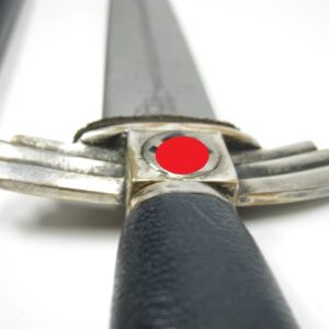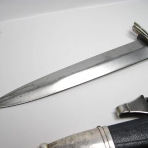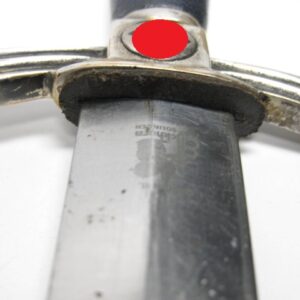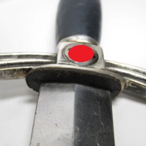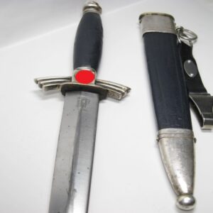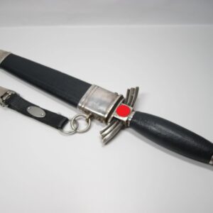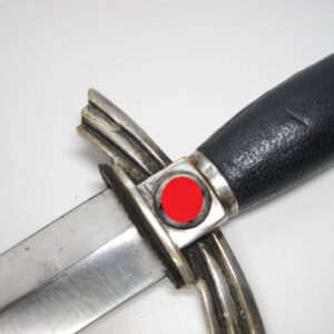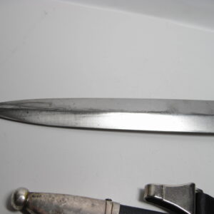 Scabbard with nickel silver fittings, undamaged with patina. Swastika very well preserved. Complete with hanger. overall condition 2.
