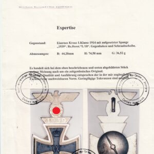 Iron Cross 1st Class 1914 with attached clasp 1939 including Niemann photo expertise
