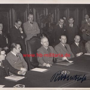 Vorderseite mit originaler Unterschrift des Reichsaußenministers Joachim von Ribbentrop. Größe ca, 18,5 x 13 cm. Guter Zustand. Sehr selten.