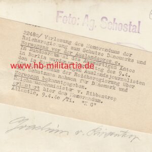 Foto mit originaler Unterschrift Reichsaußenminister von Ribbentrop- VERKAUFT-SOLD