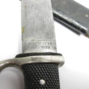 RZM M7/37 1939 mit dazugehörige, schwarz lackierte, teilweise etwas korrodierte Eisenscheide mit Belederung. Raute unbeschädigt.