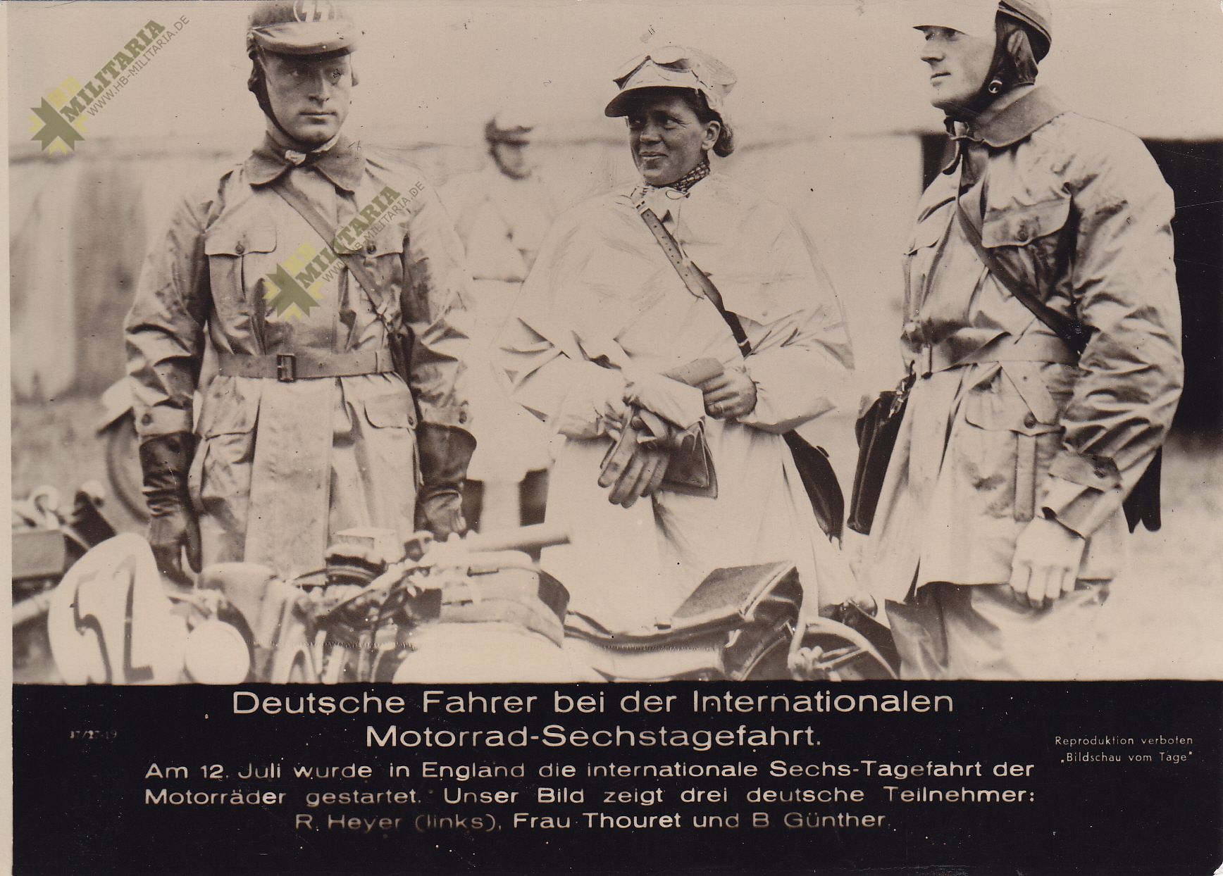 III. Reich Original Pressefoto Deutsche Fahrer bei der Internationalen Motorrad Sechstagefahrt. Grösse ca.: 14,5 x 10,5 cm.
