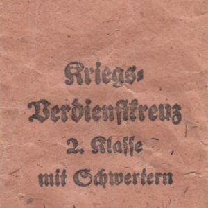 Kriegsverdienstkreuz 1939 zweite Klasse mit Schwertern. Bandring gestempelt mit 92.